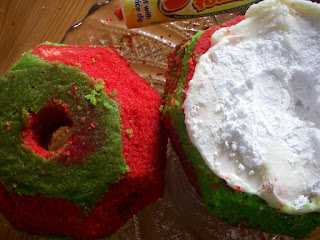 I had been playing with the idea of a 'Sherbet* Lemon Cake' for a long time and made some very nice variations on this theme. I made various yellow cakes with a great lemon tang but they ultimately looked so boring. Inspiration for this cake is a *lemon sherbet; an English candy with a hard candy lemon flavoured body and shot through the middle with sherbet powder, just like the picture on the left. Luckily for me, one brain synapse was still working and a thought transmitted across to another random cell; 'If Dumbledore had wanted a Sherbet Lemon Cake, it would have to look at least magical, if not very special and, probably not an obvious yellow colour'.
